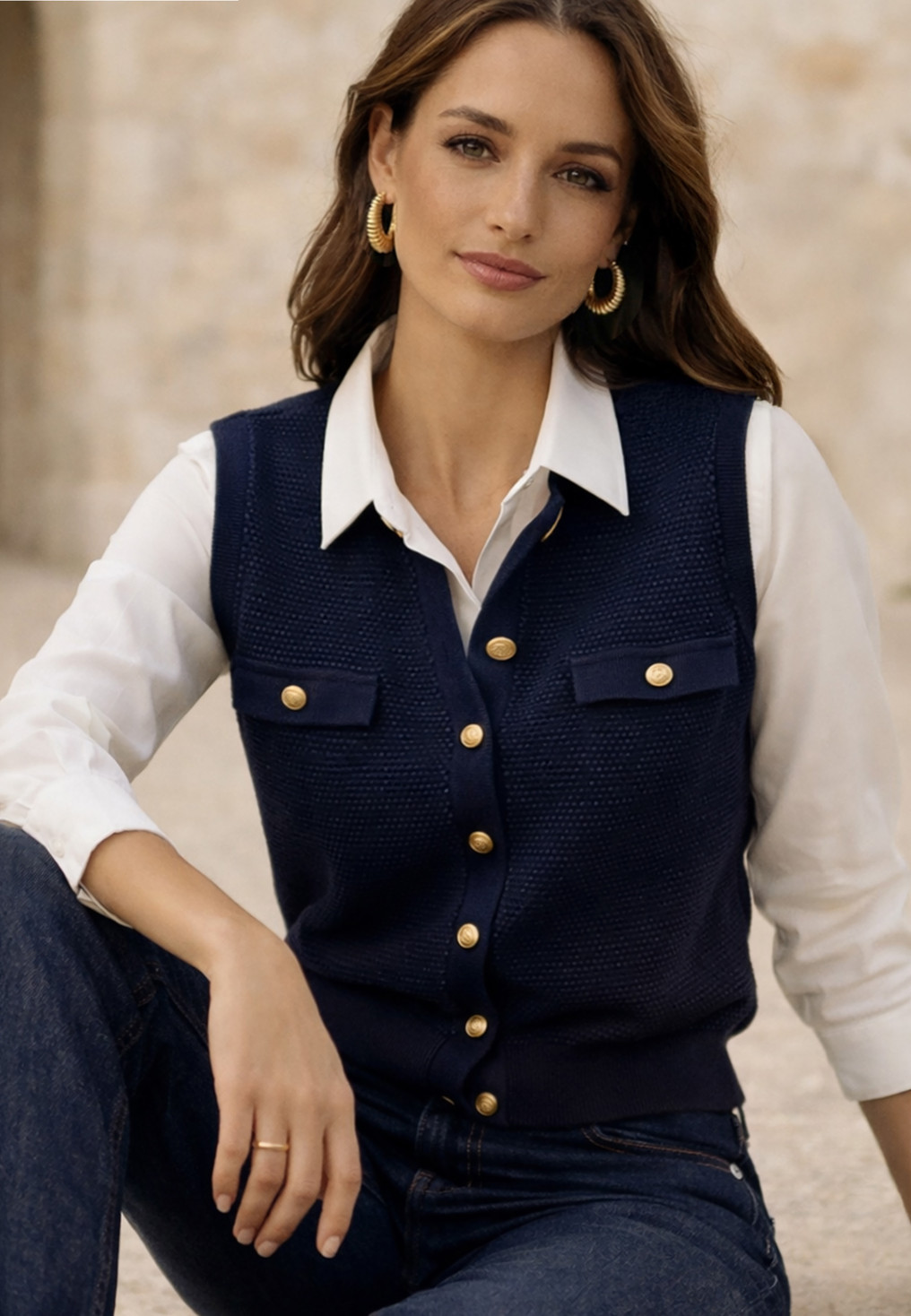 GILET SANS MANCHES 100% COTON - LIKA - MARINE
