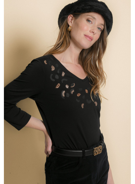 T-SHIRT MANCHES 3/4 - JEREMIA - NOIR