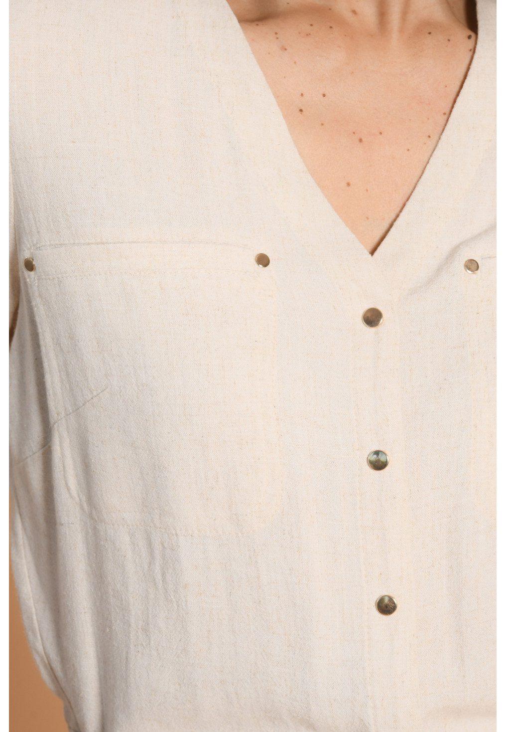 - Encolure V, pression fermant le buste jusqu'à la taille