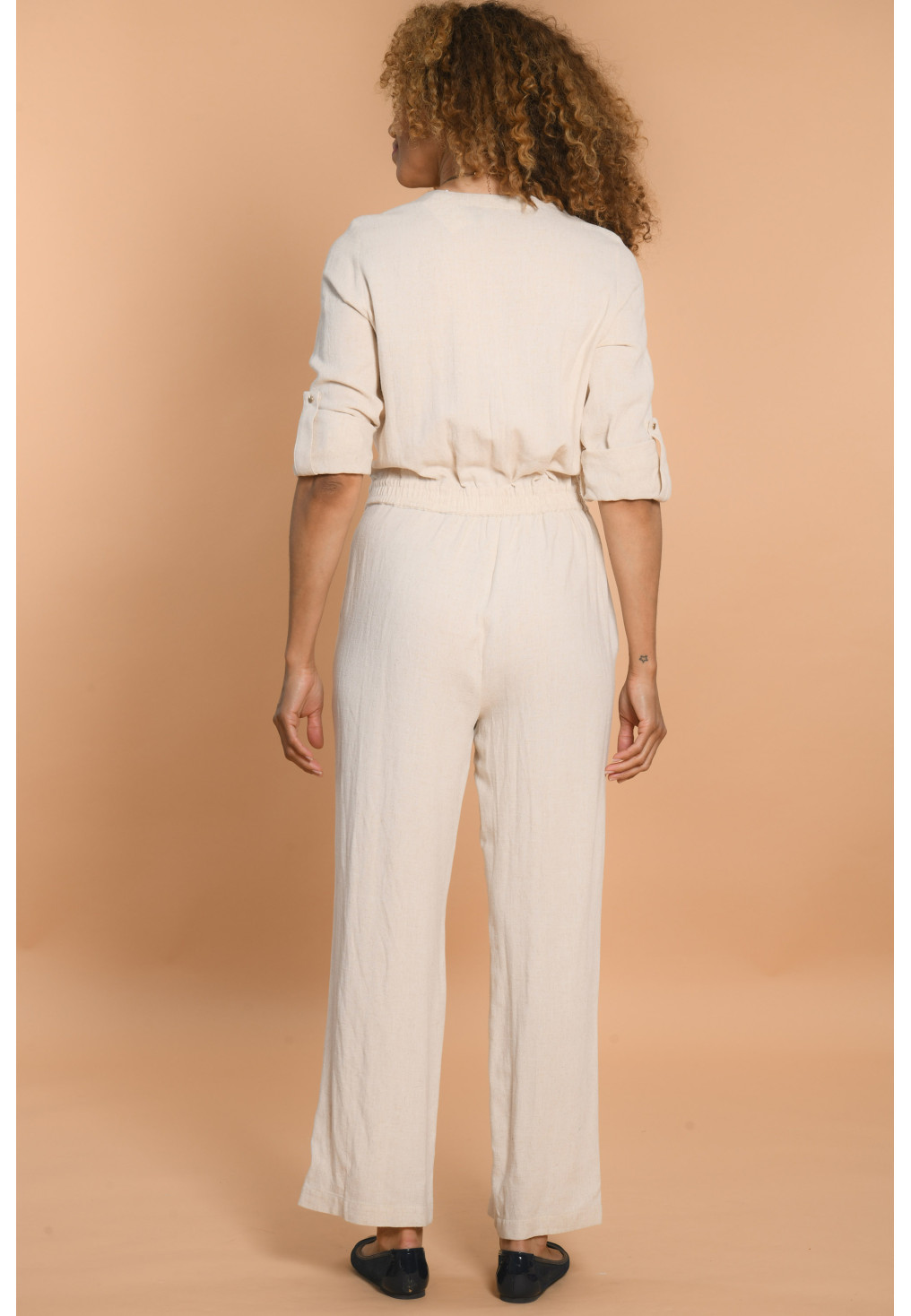 - Taille élastiquée au dos, avec lien de serrage à nouer devant