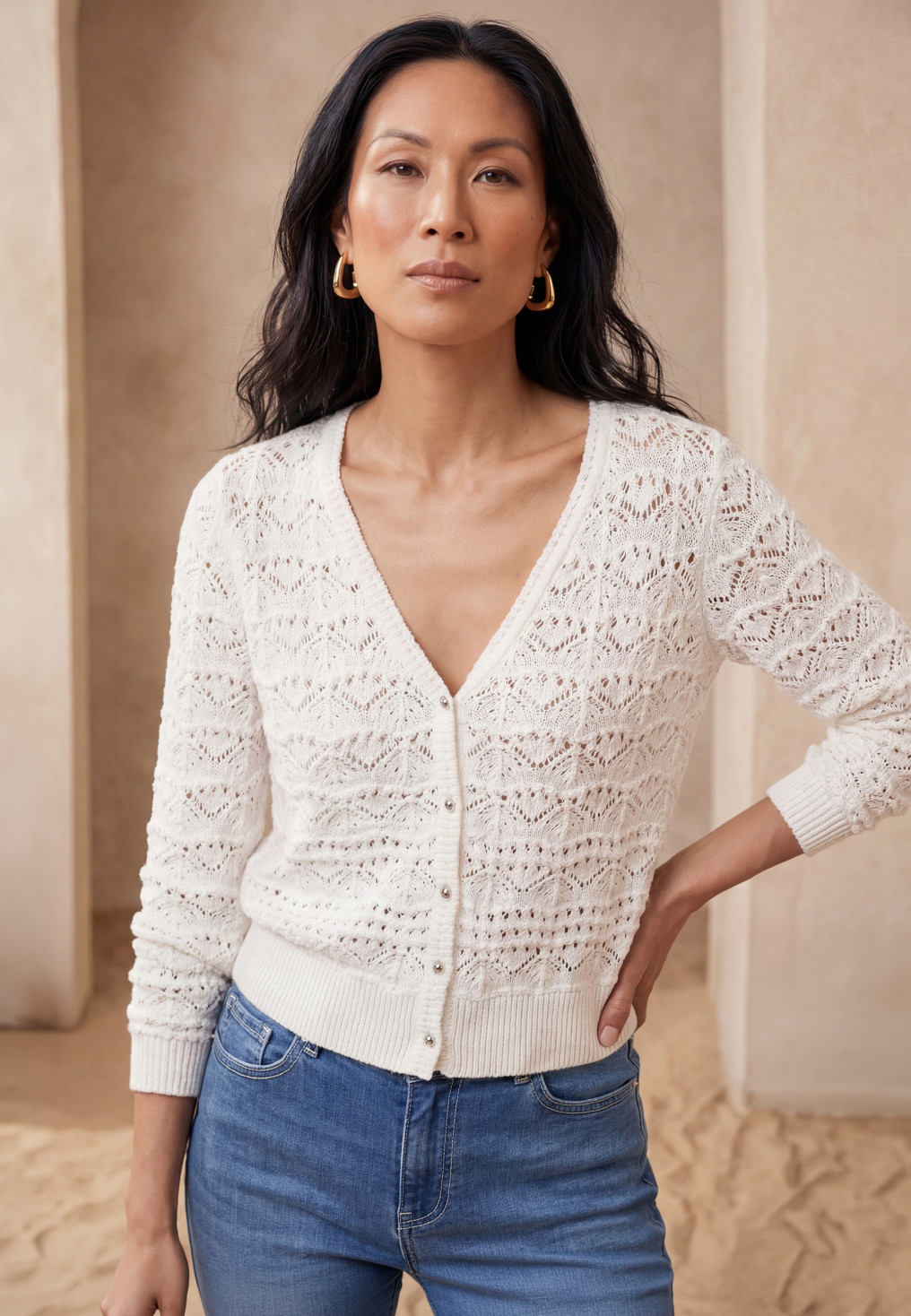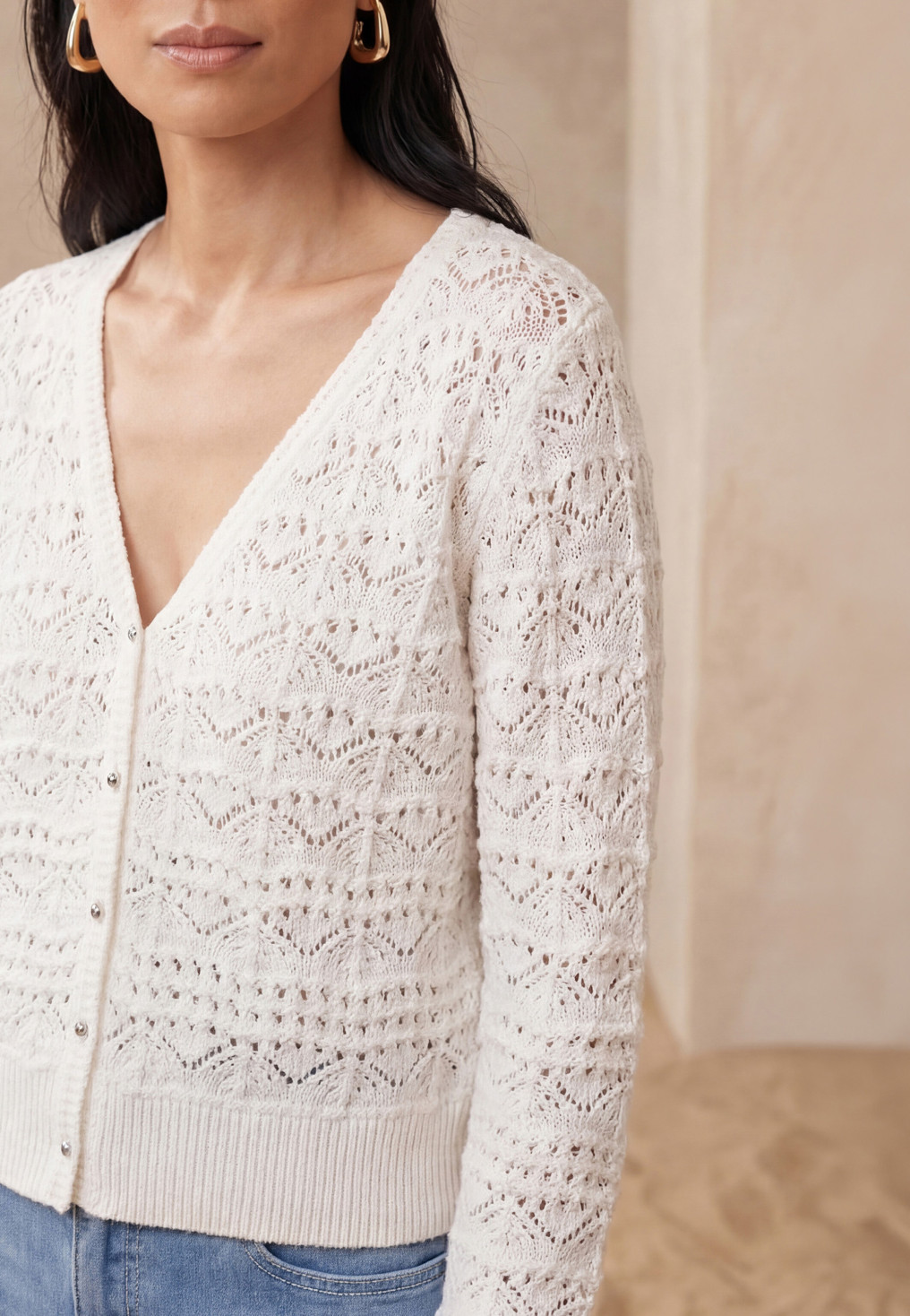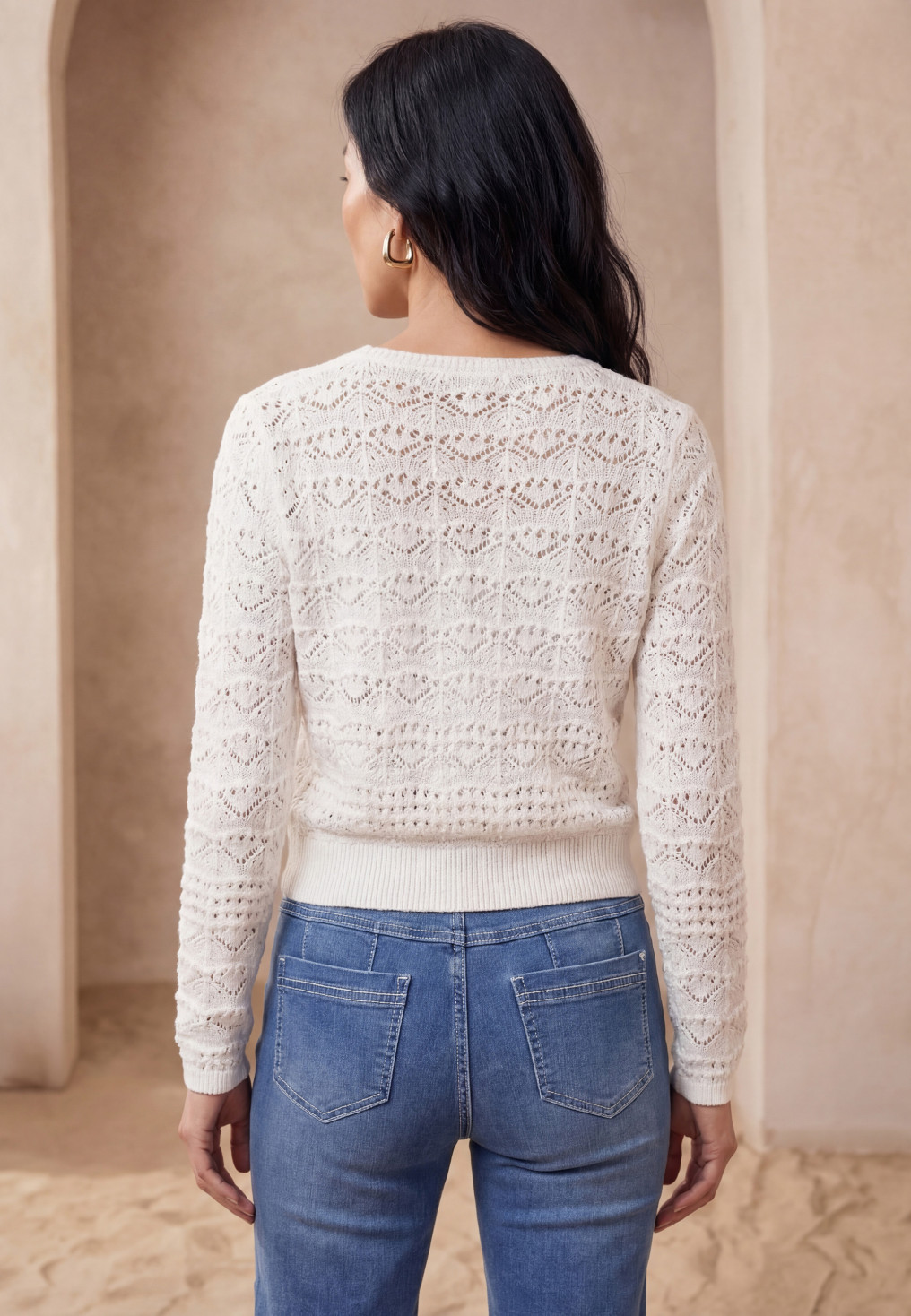 - Maille 100% coton, tricotage ajouré façon crochet