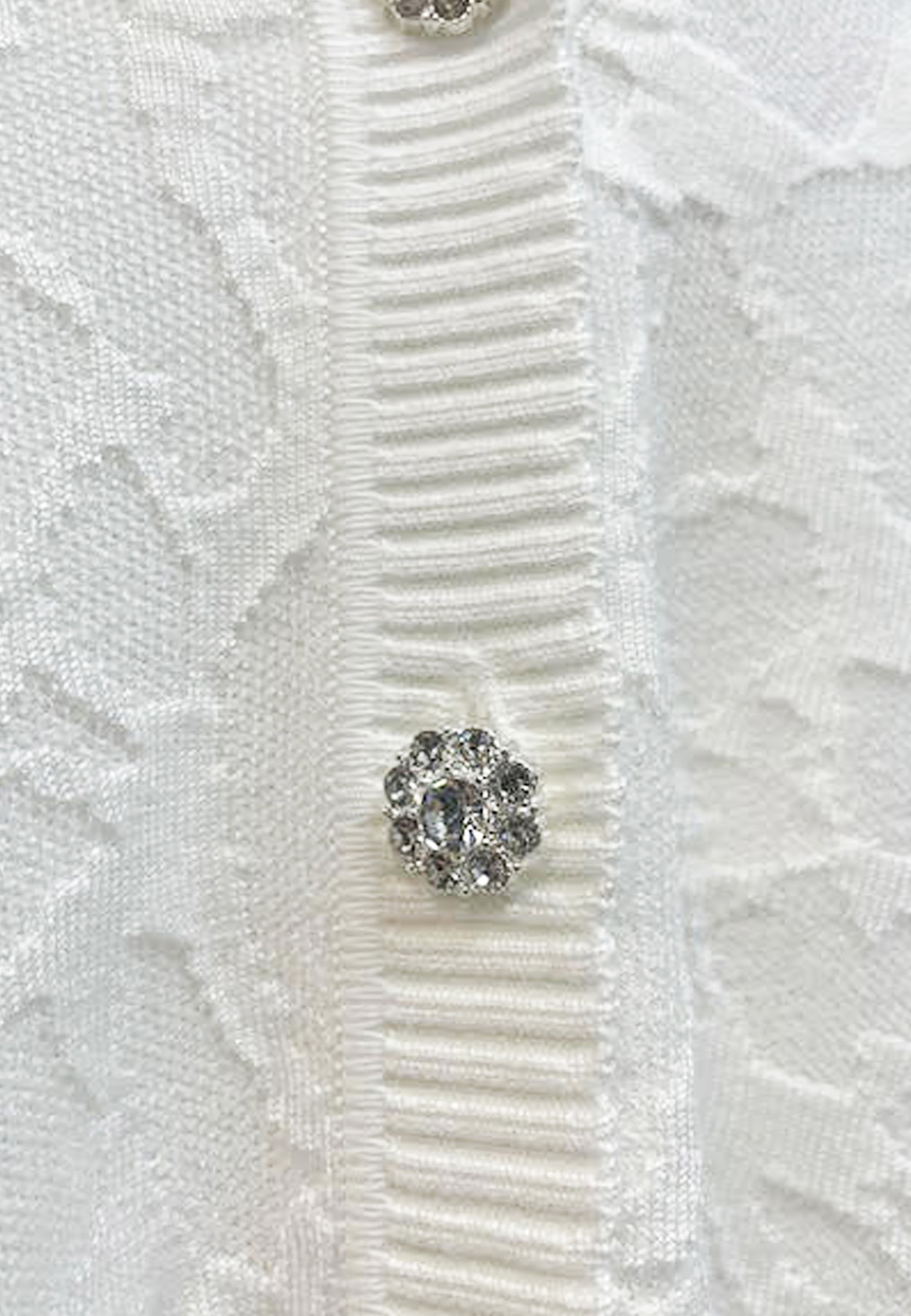 - Encolure V, boutonnage apparent milieu devant, boutons bijoux