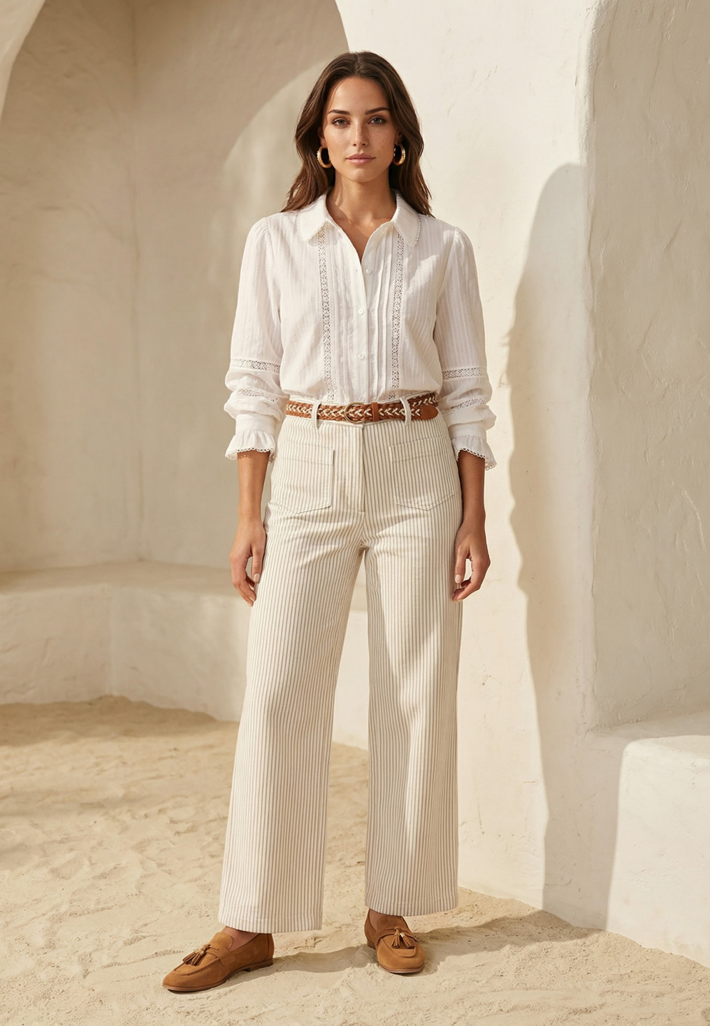 - En coton avec touche de stretch pour plus de confort, fines rayures verticales