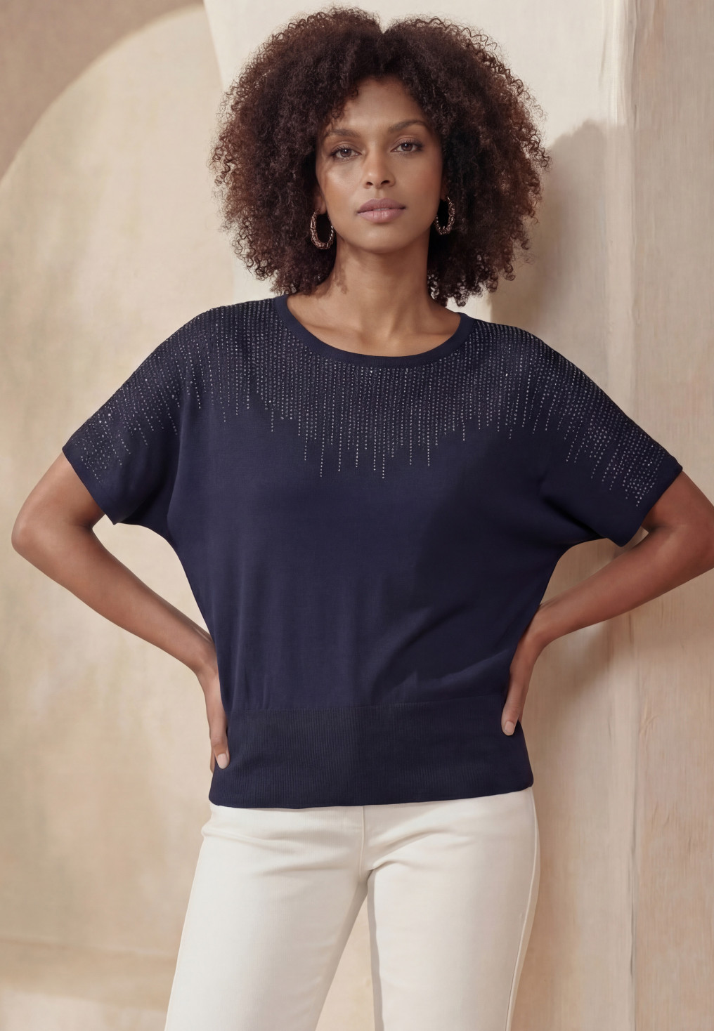 - Une cascade de clous scintillants sur le pull Lennox