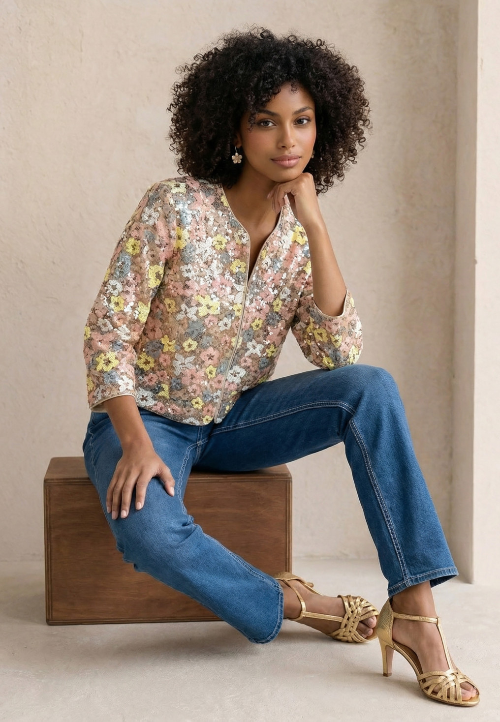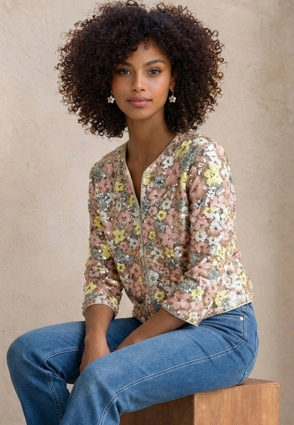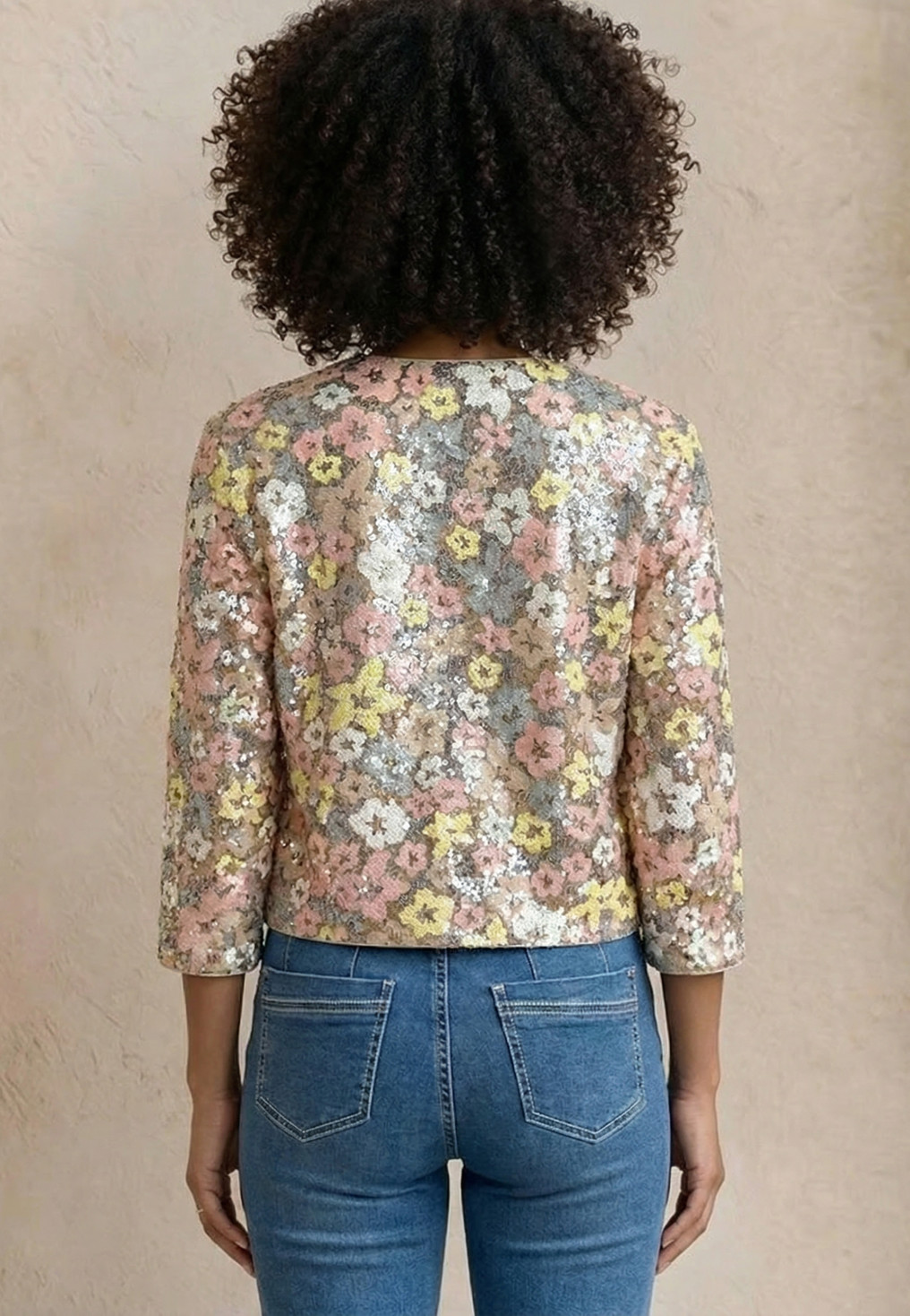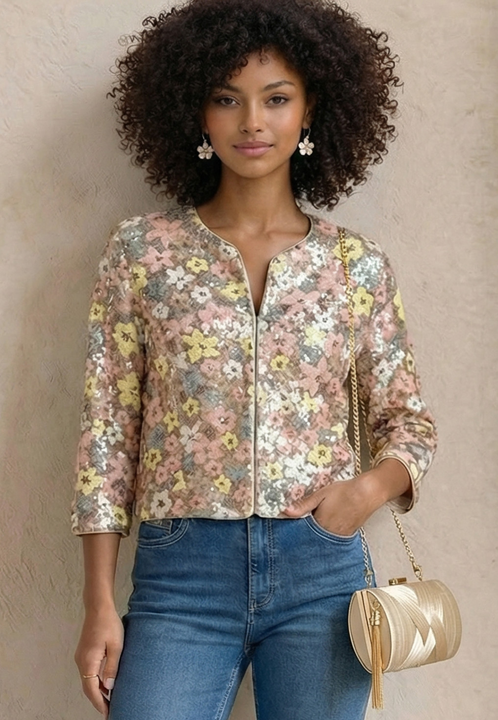 - Laluz, la rencontre des fleurs et des paillettes sur une veste à adopter d'urgence!