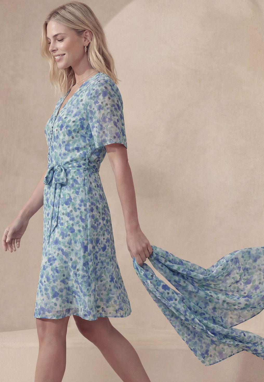- Beaucoup de douceur pour l'imprimé floral de la robe Leonthine