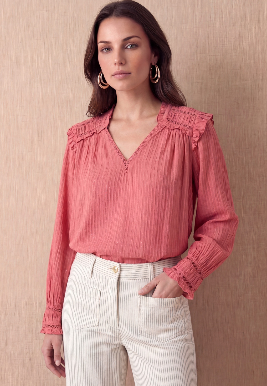 - La blouse Luki séduit par son esprit délicat, éclairé par un fil lurex très féminin.