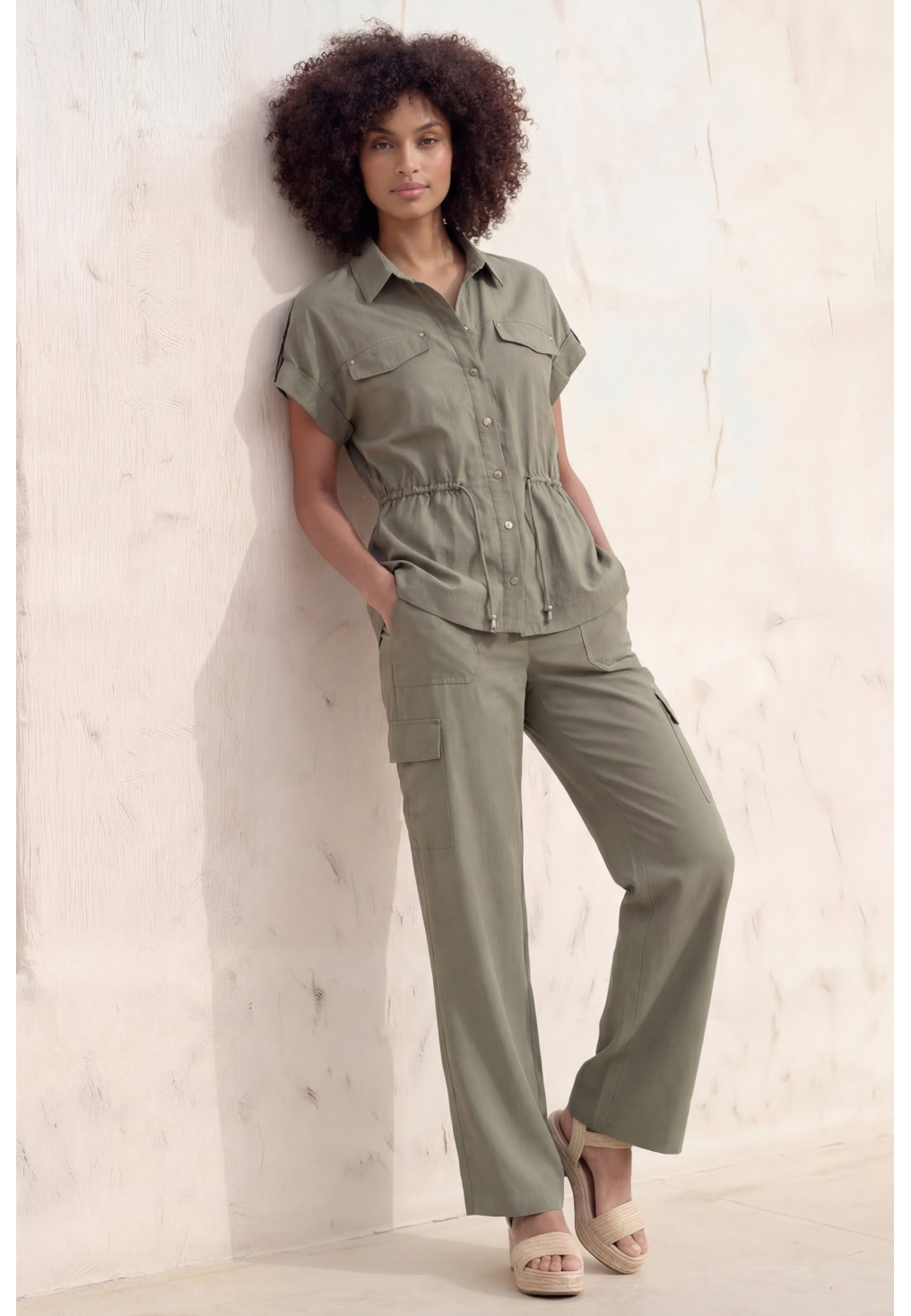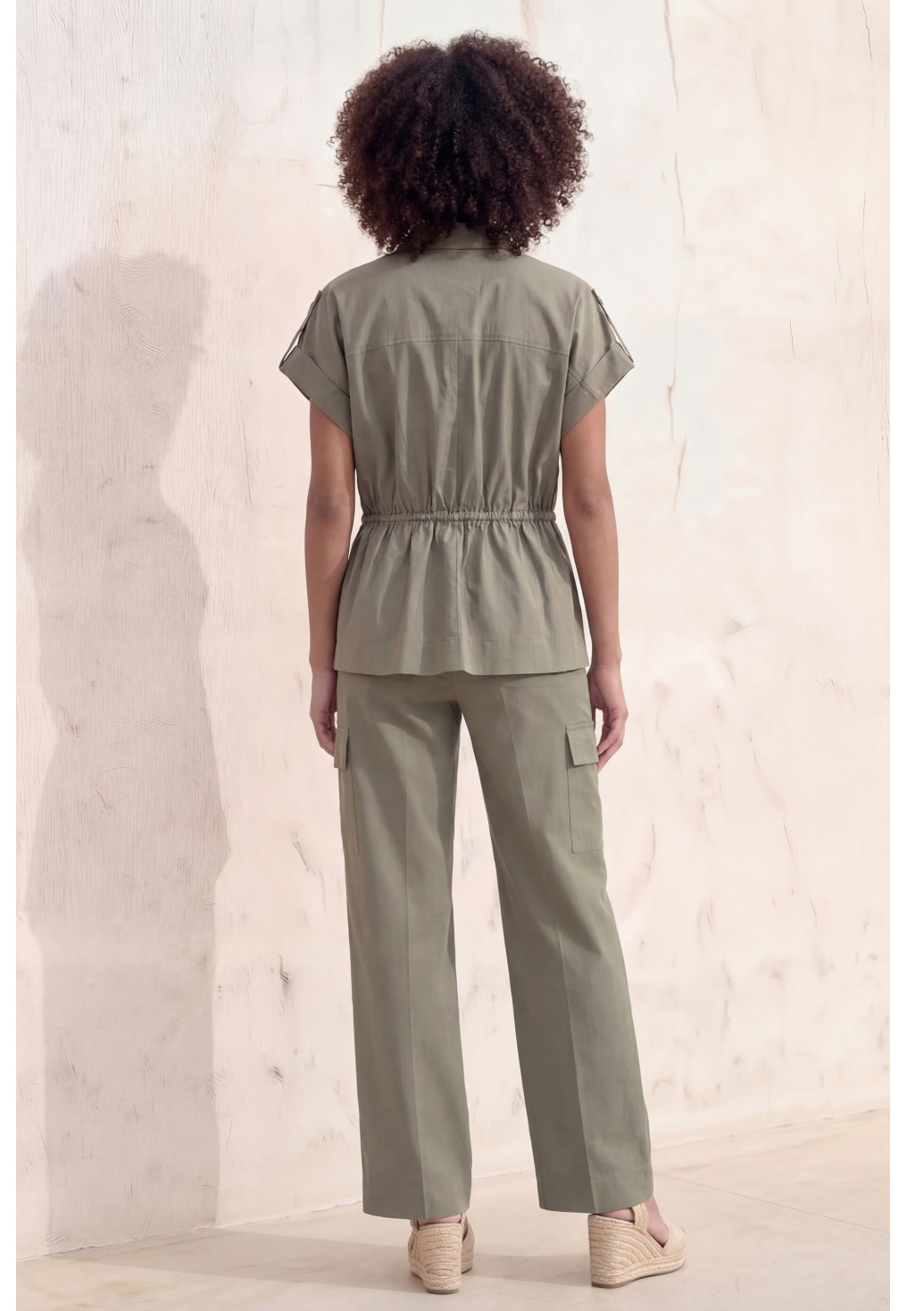 - Manches courtes à même avec revers maintenu par une patte boutonnée