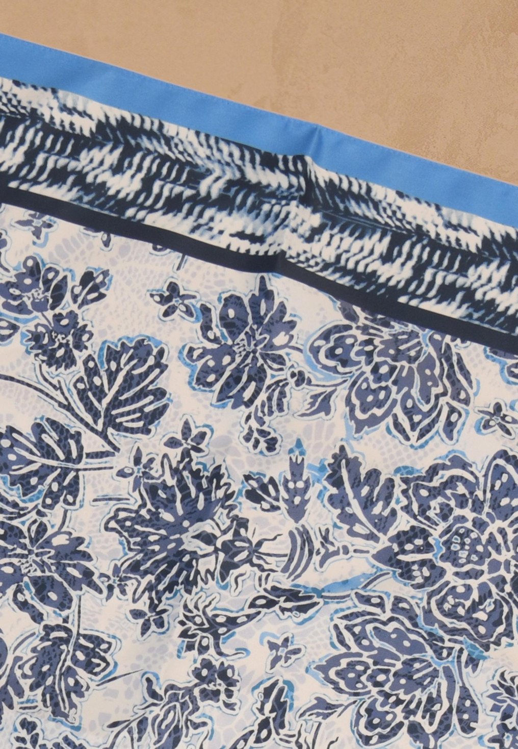 - Grand motif de feuilles et de fleurs, avec bord uni contrastant