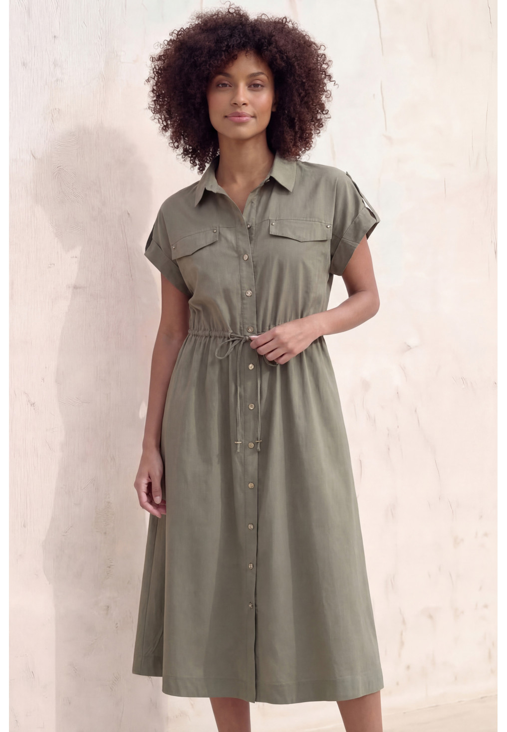 - Manches courtes à même avec revers maintenu par une patte boutonnée