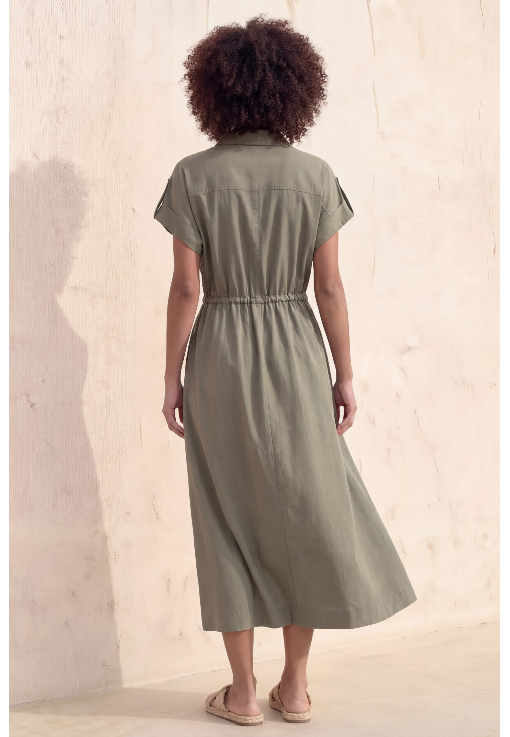 - Détail de la taille élastiquée au dos, avec lien coulissant devant