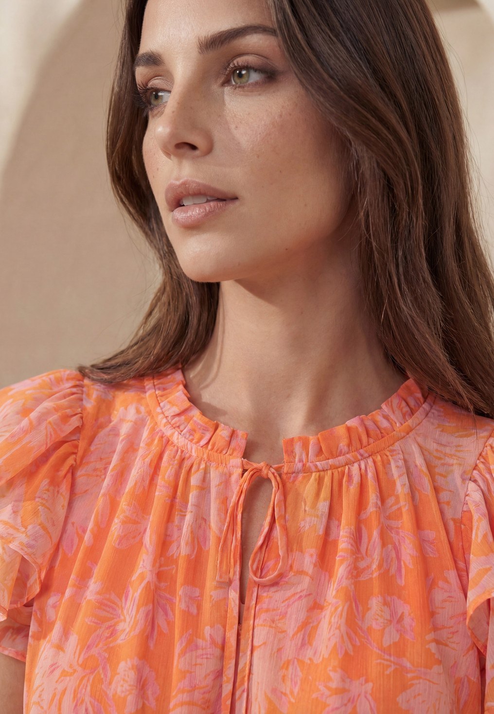 - Encolure ras de cou, bordée d'un volant, avec liens à nouer
