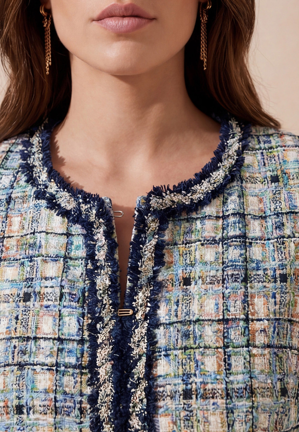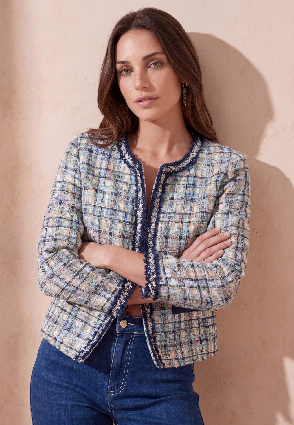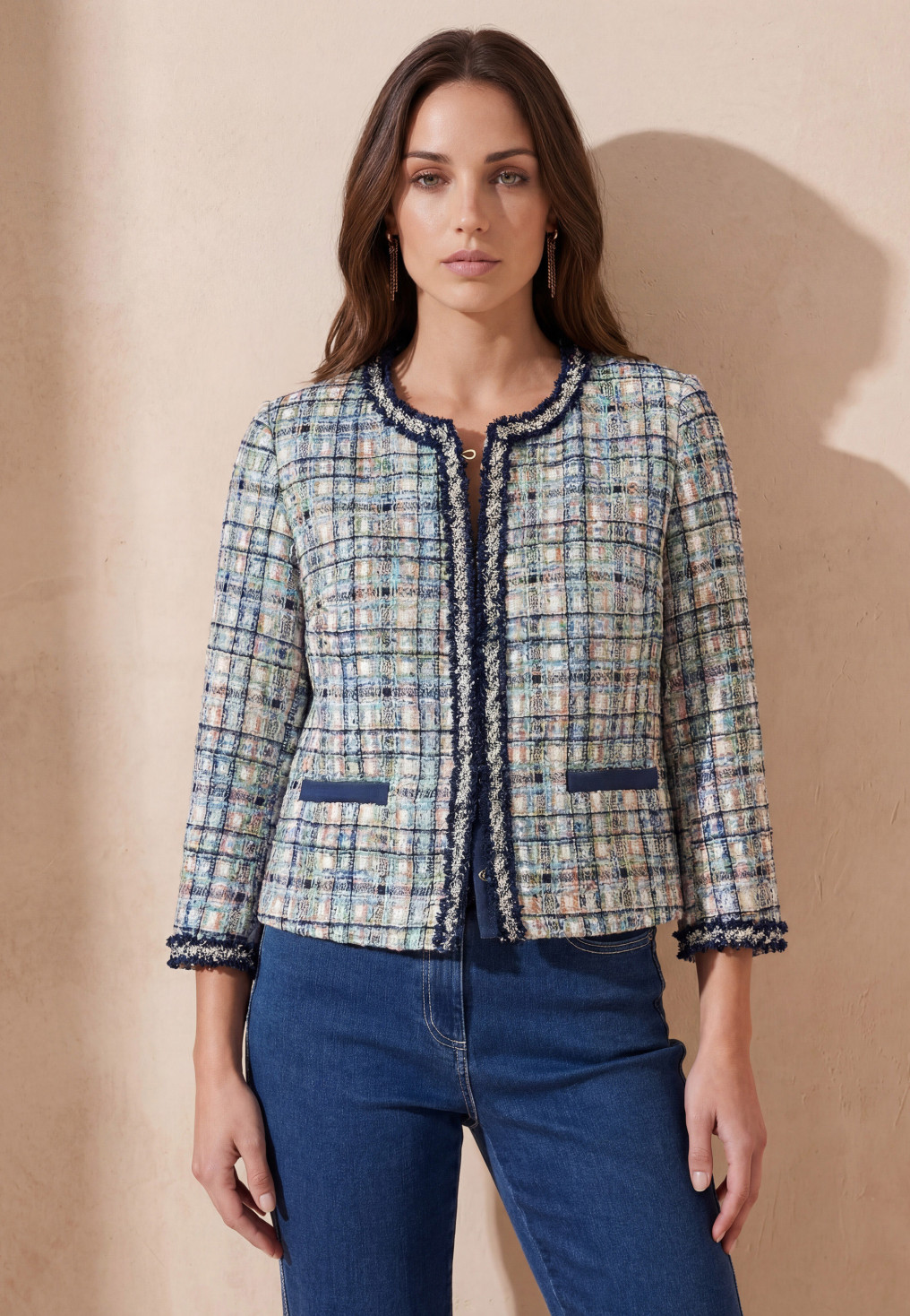 - Lucide, la veste en tweed déclinée dans une version courte et pailletée