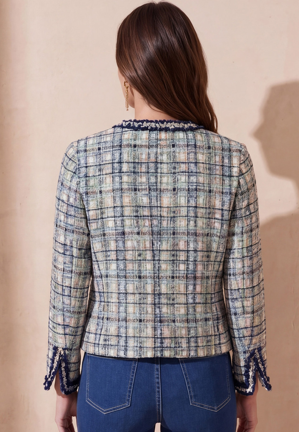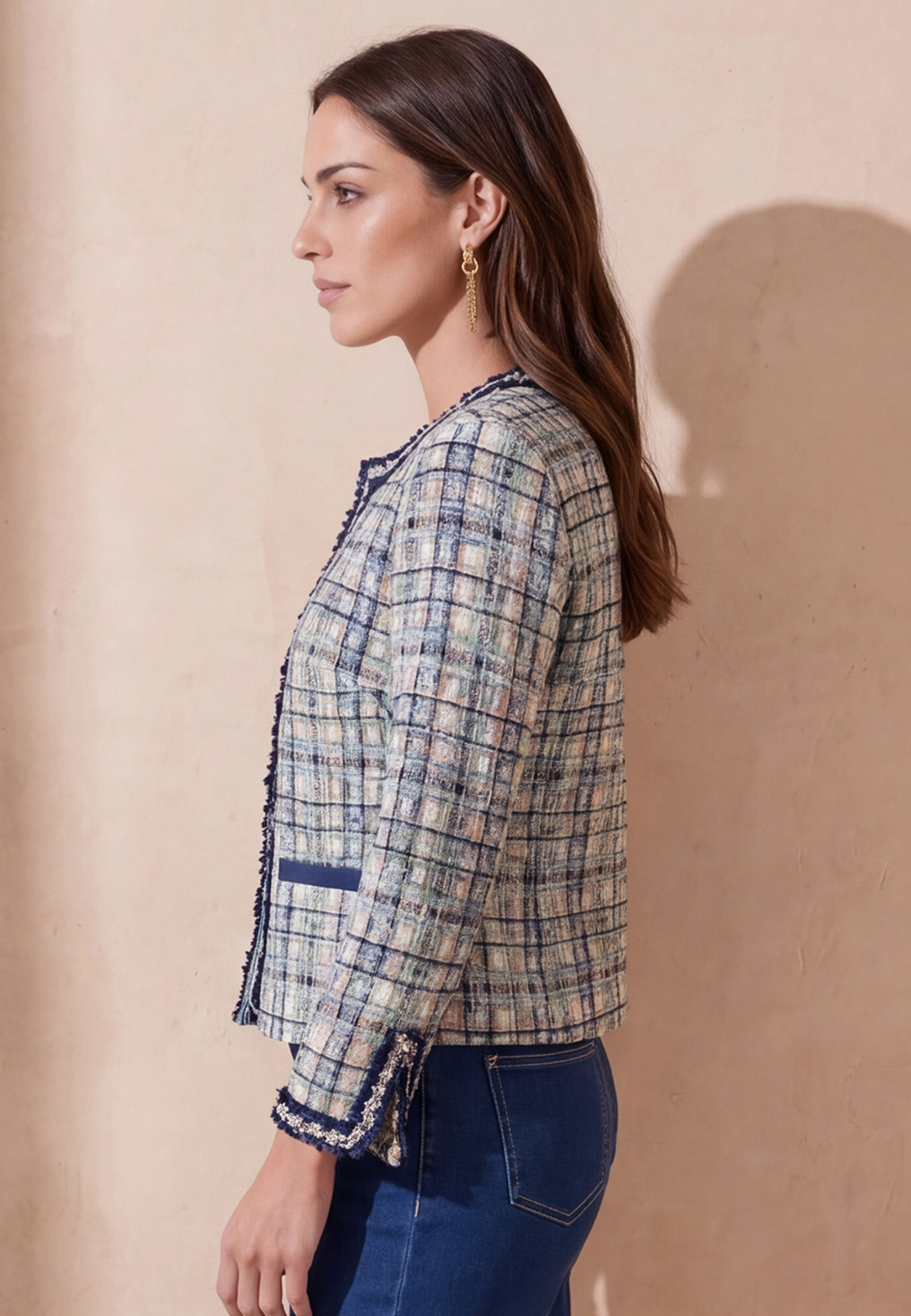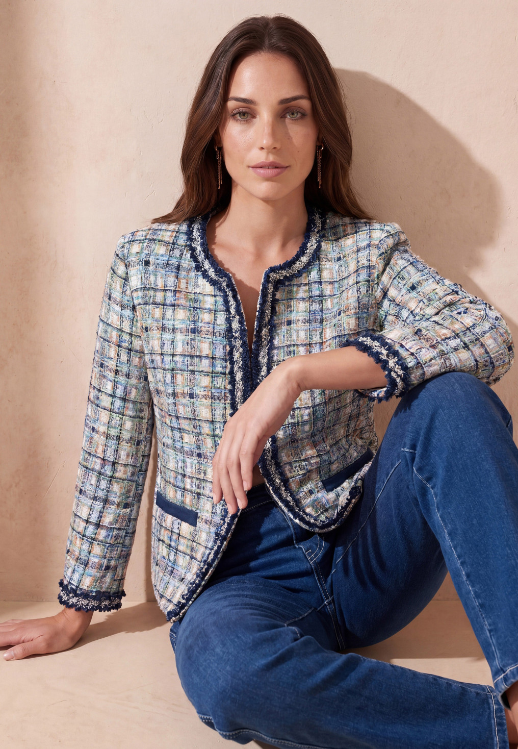 - Lucide, la veste en tweed déclinée dans une version courte et pailletée